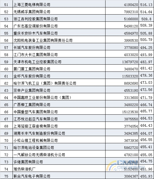 2004年中國(guó)機(jī)械500強(qiáng)排名(1-100)