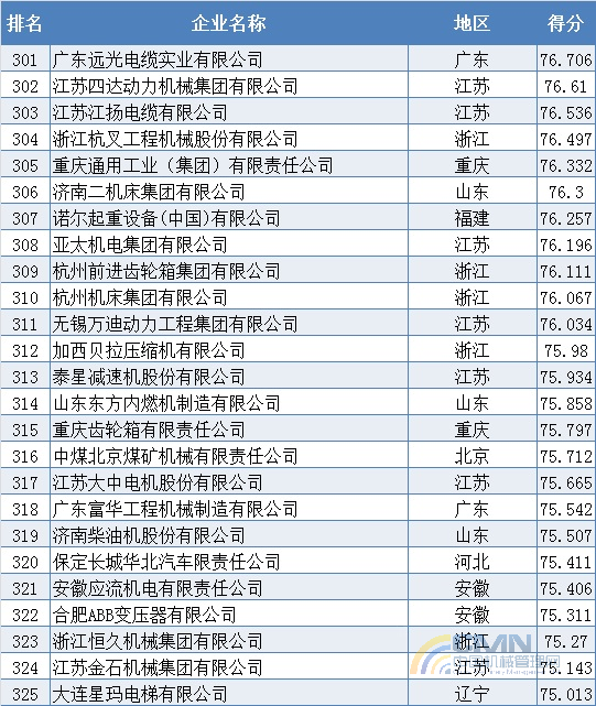 2007年中國機(jī)械500強(qiáng)排名(301-400)