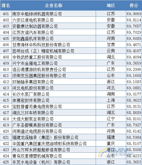 2008年中國(guó)機(jī)械500強(qiáng)排名(401-500)