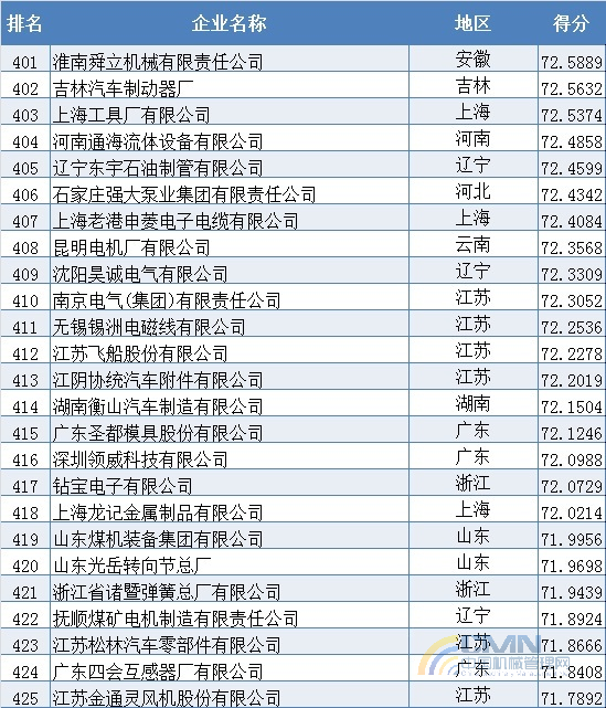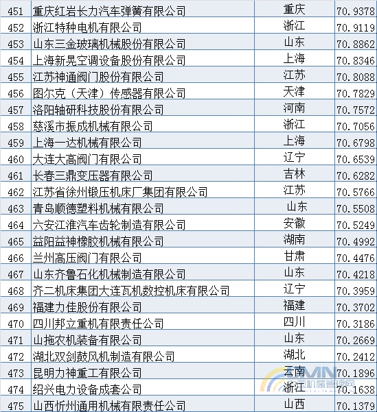 2009年中國(guó)機(jī)械500強(qiáng)排名(401-500)