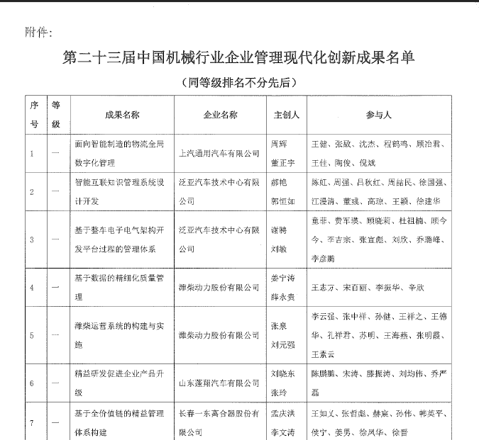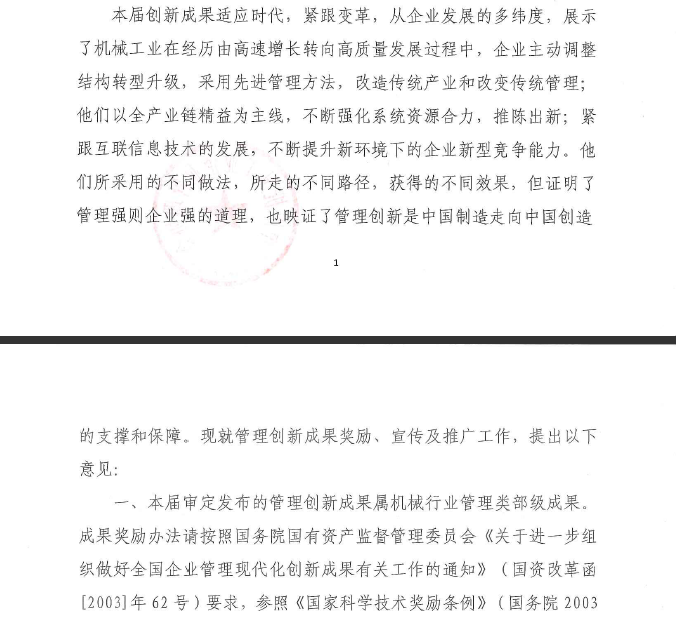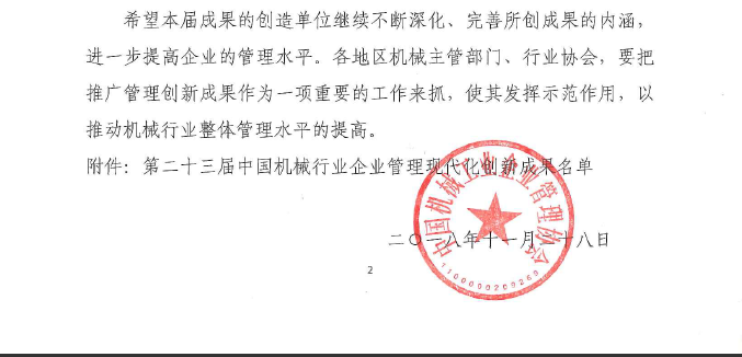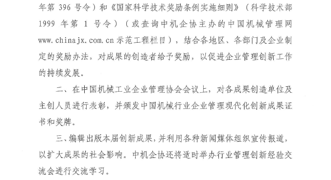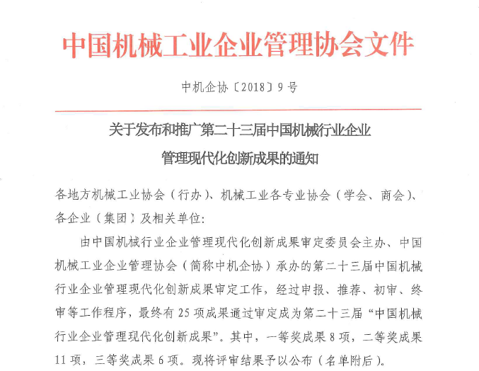 關于發(fā)布和推廣第二十三屆中國機械行業(yè)企業(yè)管理現(xiàn)代化創(chuàng)新成果的通知