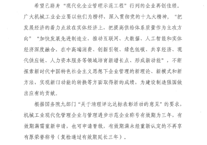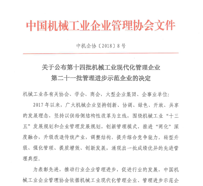 關(guān)于公布第十四批機械工業(yè)現(xiàn)代化管理企業(yè)、第二十一批管理進步示范企業(yè)的決定-中機企協(xié)〔2018〕8號.pdf