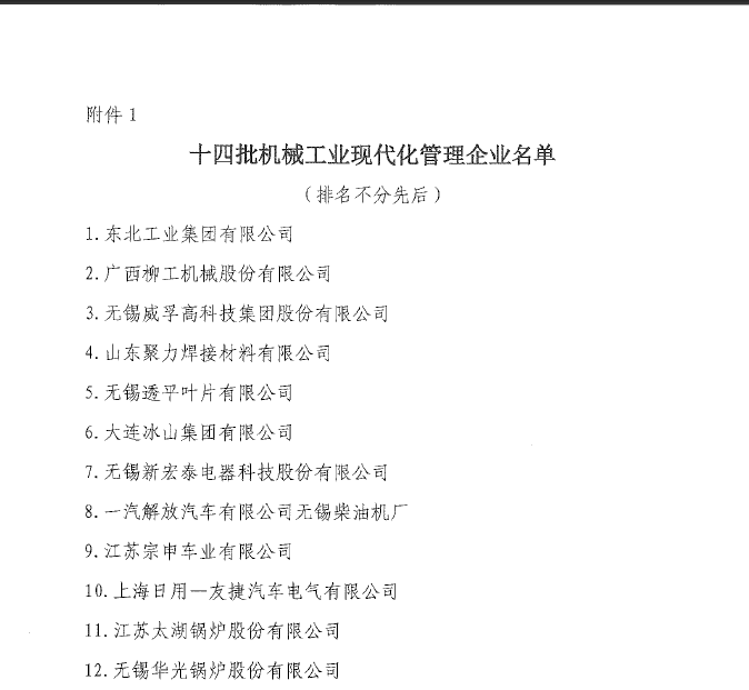 關(guān)于公布第十四批機械工業(yè)現(xiàn)代化管理企業(yè)、第二十一批管理進步示范企業(yè)的決定