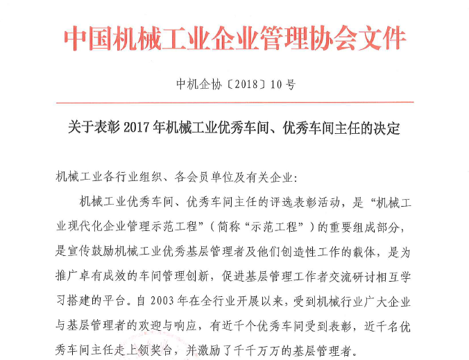 關(guān)于表彰機(jī)械工業(yè)優(yōu)秀車(chē)間、優(yōu)秀車(chē)間主任的決定-中機(jī)企協(xié)〔2018〕10號(hào).pdf
