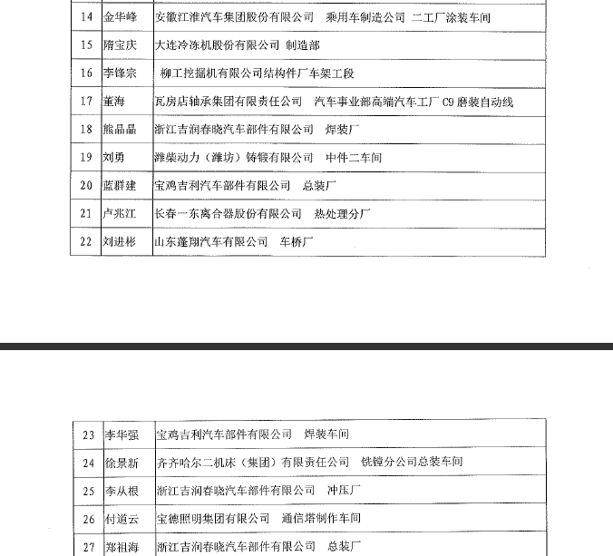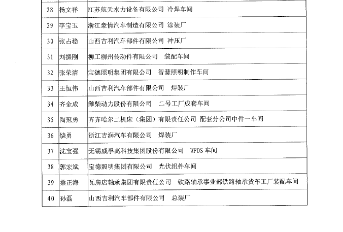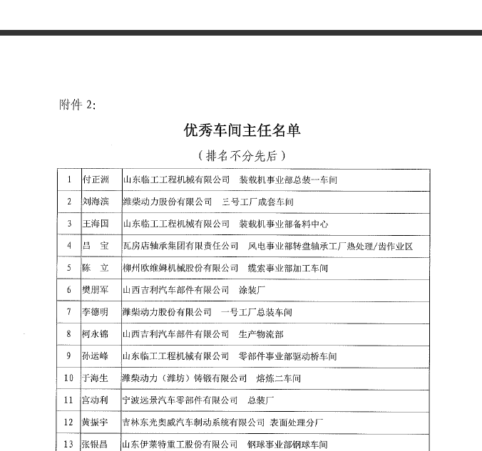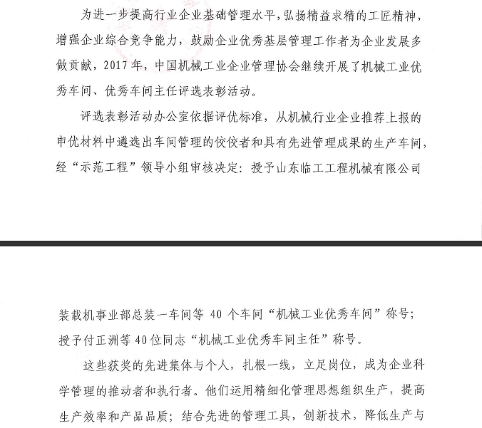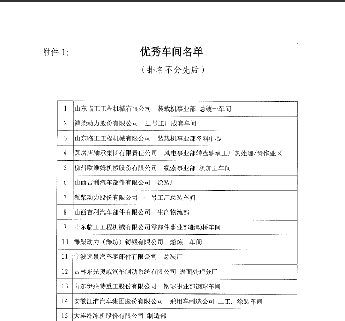 關(guān)于表彰2017年機(jī)械工業(yè)優(yōu)秀車(chē)間、優(yōu)秀車(chē)間主任的決定