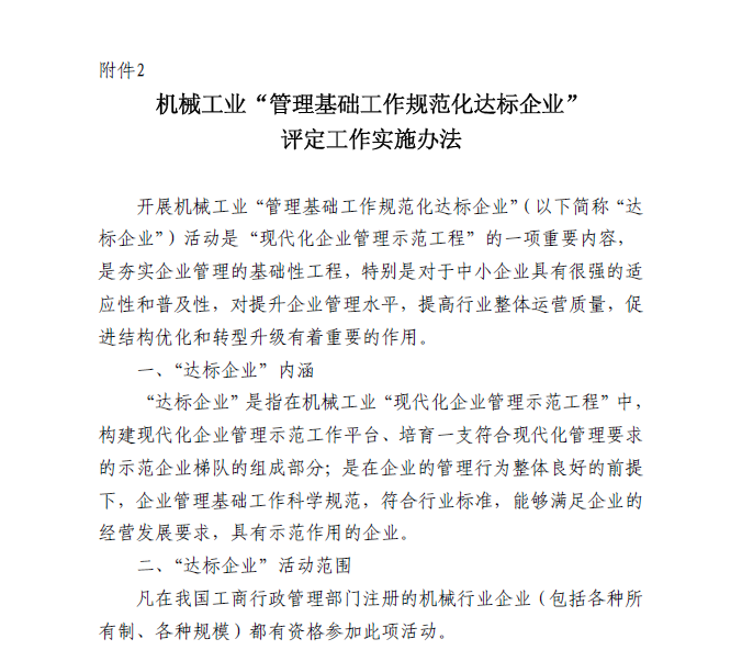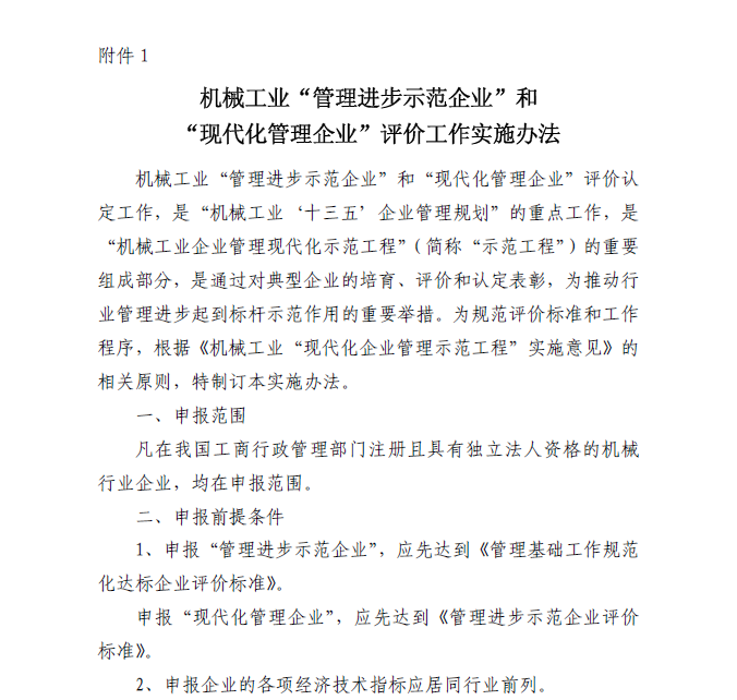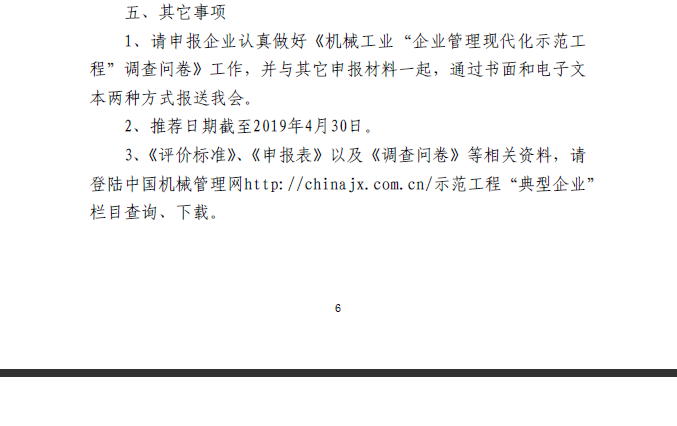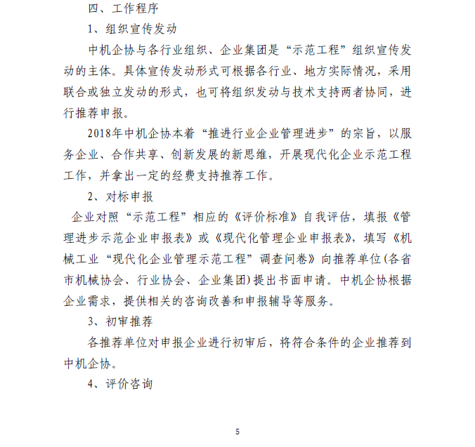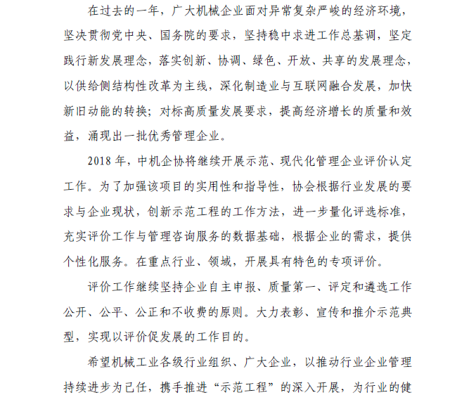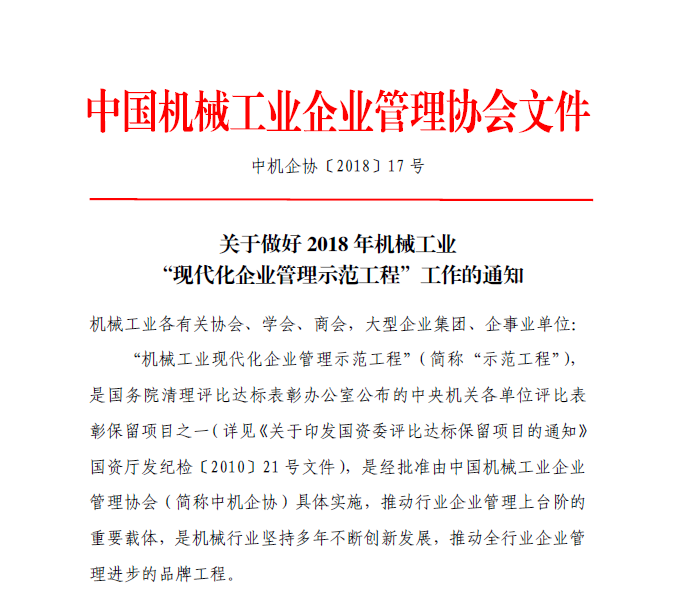 關(guān)于做好2018年機械工業(yè)“現(xiàn)代化企業(yè)管理示范工程”工作的通知