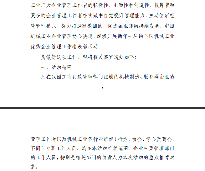 關(guān)于開展2017~2018年度機(jī)械工業(yè)優(yōu)秀企業(yè)管理工作者表彰活動的通知