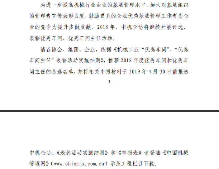 (四)中機(jī)企協(xié)每年將向榮獲優(yōu)秀車間和優(yōu)秀車間主任稱號的集體和個人進(jìn)行授牌表彰。