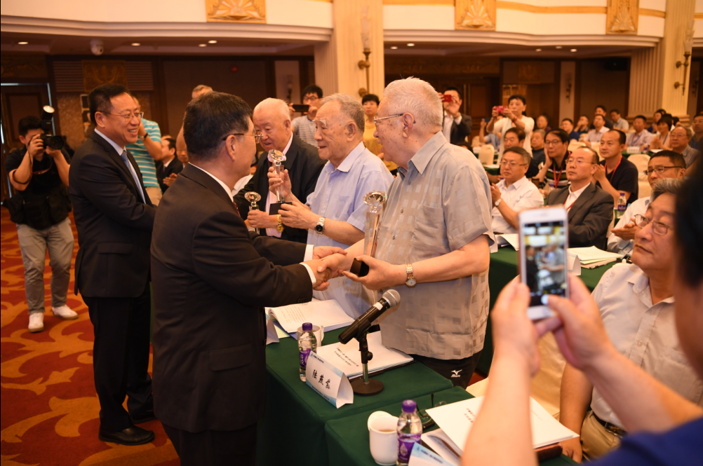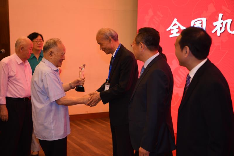 孫伯淮、于中赤兩位理事長將“中國機(jī)械工業(yè)企業(yè)管理終身榮譽(yù)獎”送到何光遠(yuǎn)、陸燕蓀、孫祖梅三位機(jī)械工業(yè)老領(lǐng)導(dǎo)手中
