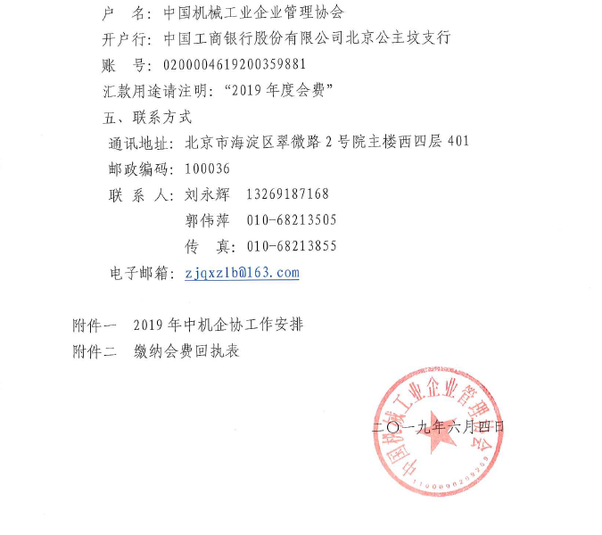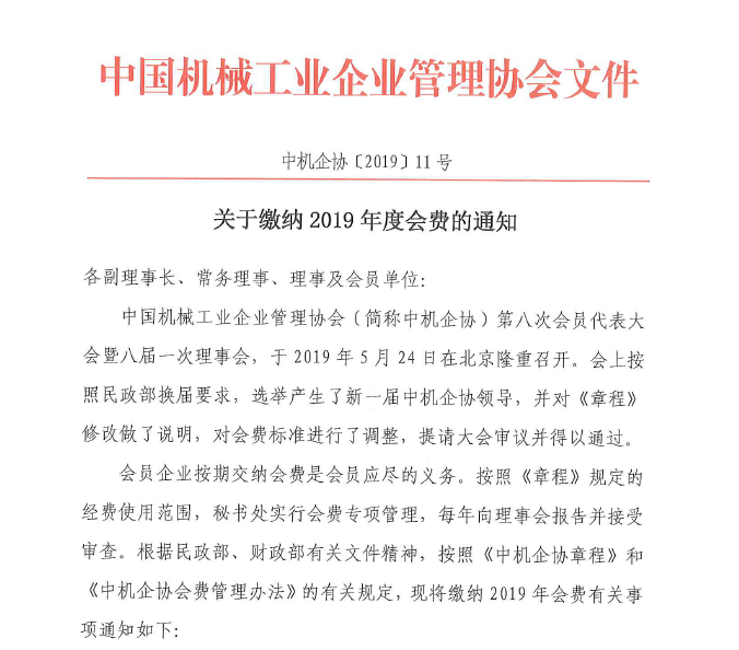 中機(jī)企協(xié):關(guān)于繳納2019年度會(huì)費(fèi)的通知