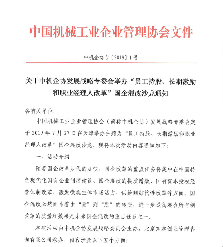 中機(jī)企協(xié)發(fā)展戰(zhàn)略專委會舉辦國企混改沙龍的通知