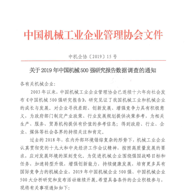 中機(jī)企協(xié)〔2019〕15號 關(guān)于2019年中國機(jī)械500強(qiáng)研究報(bào)告數(shù)據(jù)調(diào)查的通知.pdf